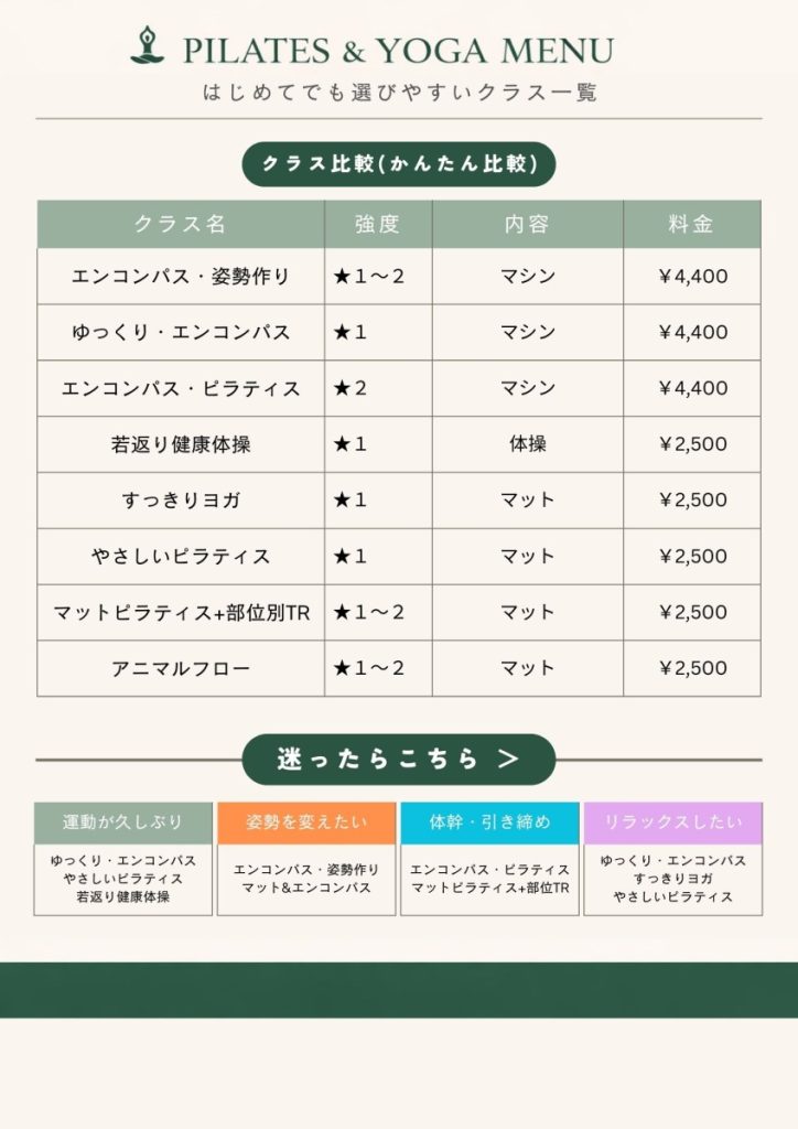 ✰初めてで不安な方は『ゆっくりエンコンパス』・『マットピラティス・ヨガ』がおススメです!!